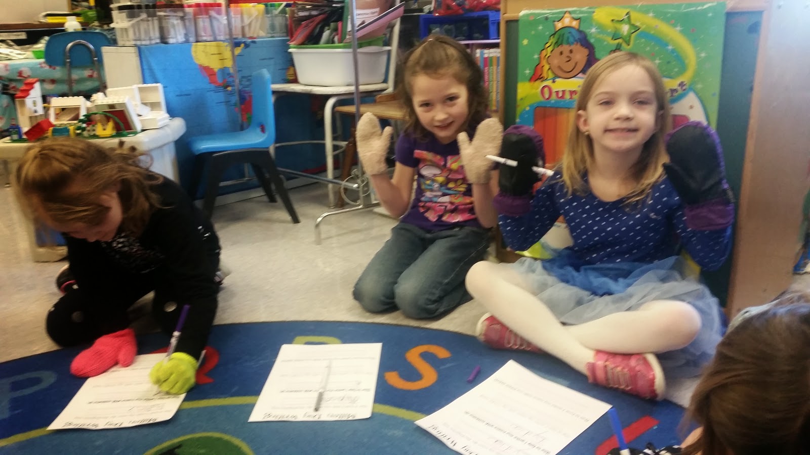 We had to WRITE with our MITTEN ON!!!