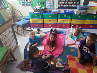On Fridays we share rest time with Mrs. Pilger's class as we watch a rest video together! It is usually a Weston Woods video (books set to video format) or LeapFrog series video. What fun!