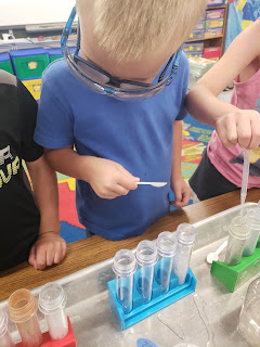 For Tuesday's centers the scientists got to mix their own compounds... vinegar and baking soda!