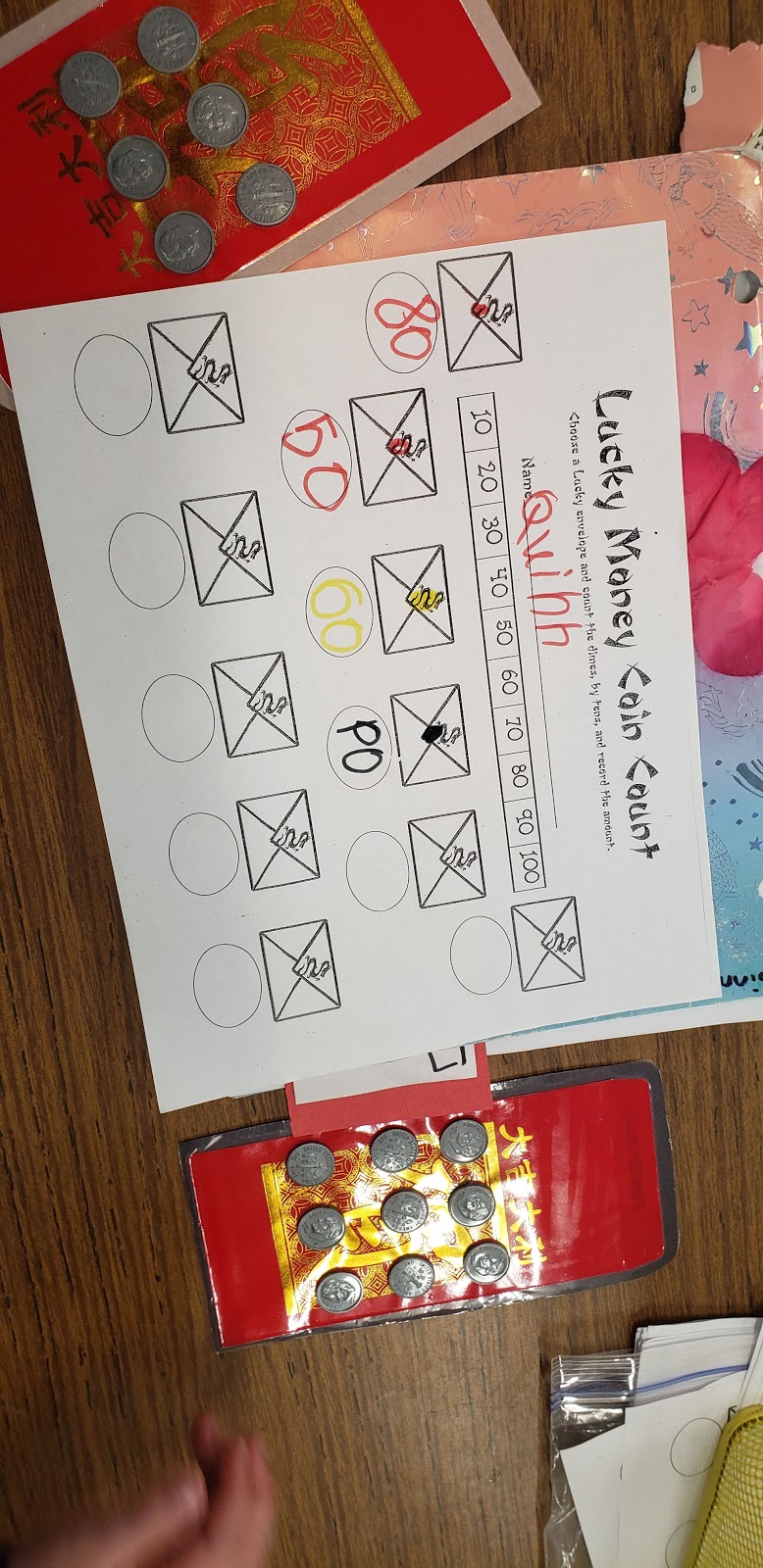 Lucky Leisies (red envelopes for gift giving) Counting by 5s...