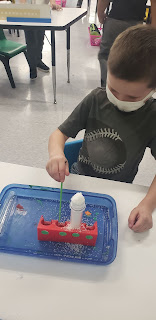 We mixed up a big batch of artifical snow this week! We then made our own individual experiments! What fun!