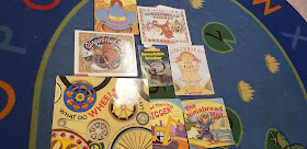 We have a very cool, very easy to set up science table. There's several 9 volt batteries and some sections of christmas lights stripped to the copper wire. The kids love to tap into the energy of the batteries to make the lights light up!